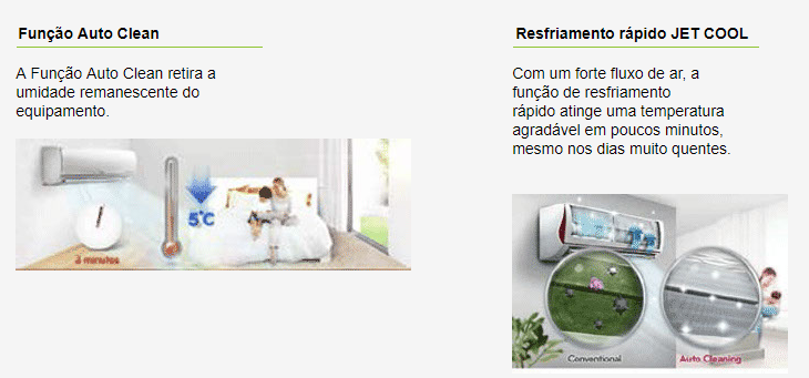 A Função Auto Clean retira a umidade remanescente do equipamento.