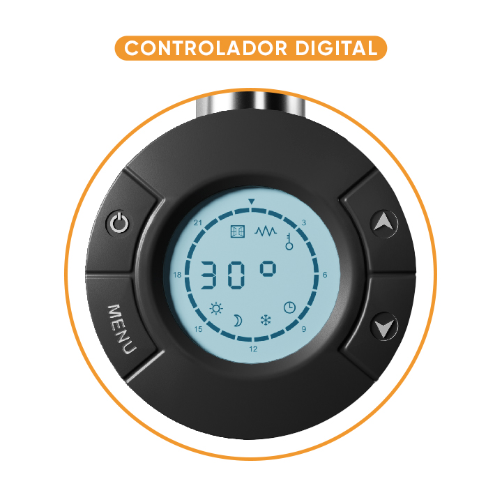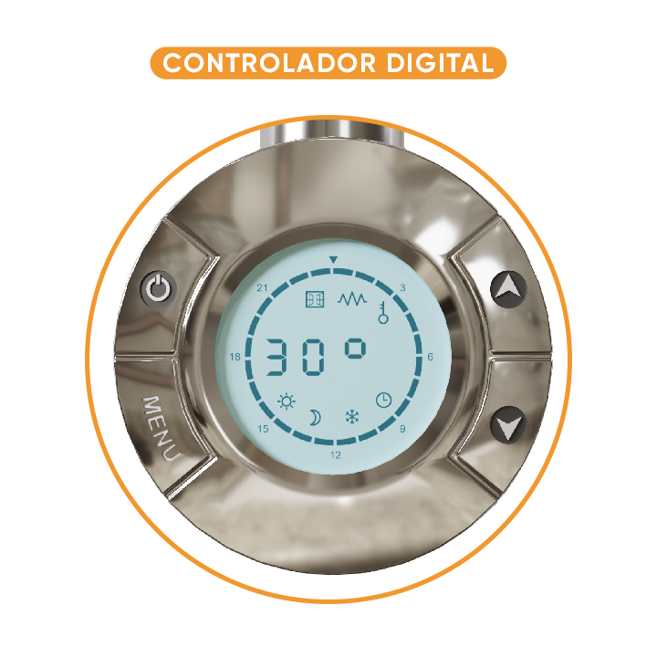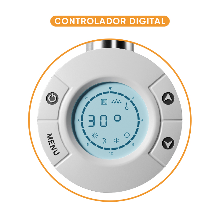 O Toalheiro Elétrico Digital Avonflow possui termostato de ambiente eletrônico e opção de programação, sendo um equipamento multifuncional.