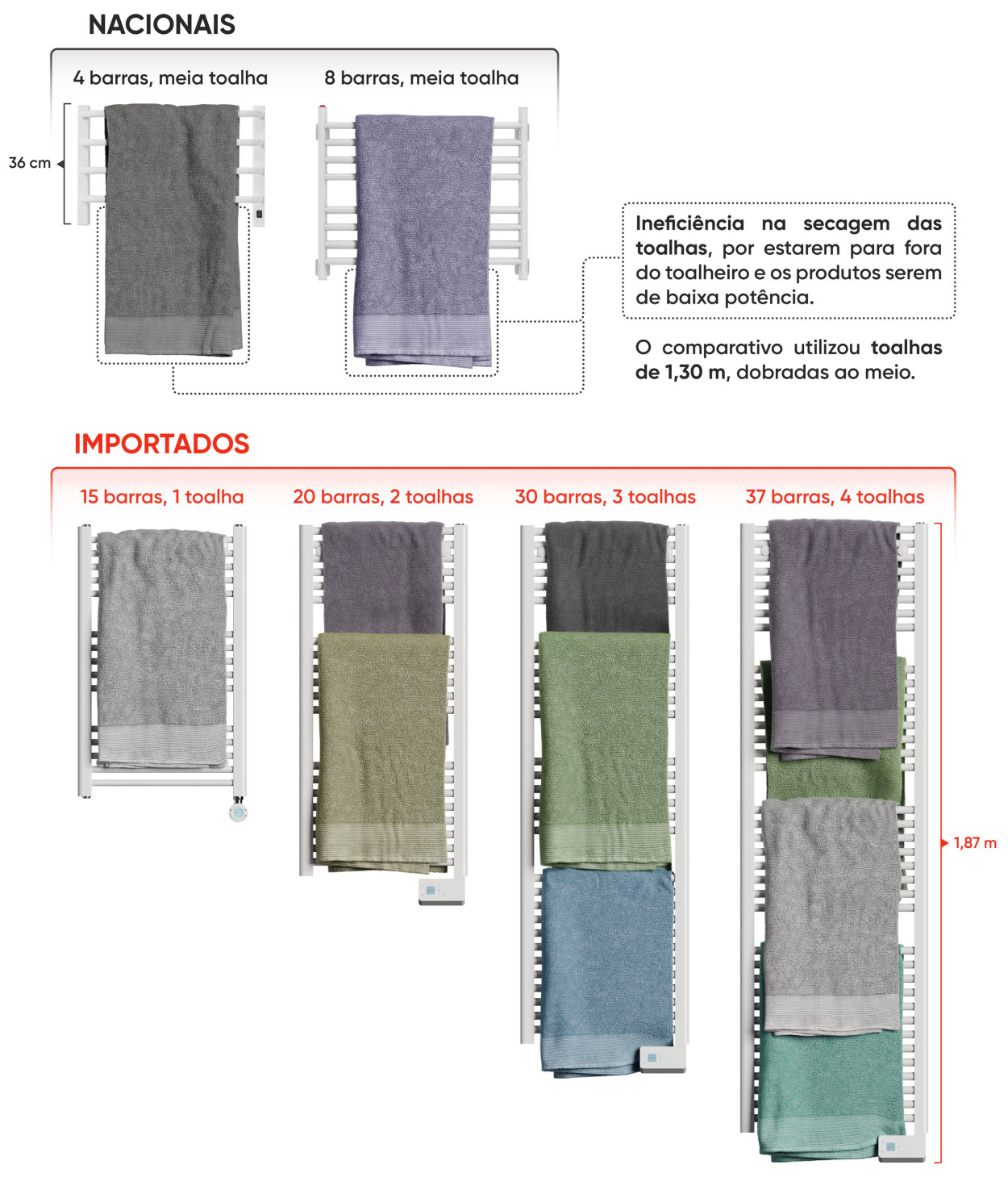 Clique aqui e assista ao comparativo entre os Toalheiros Nacionais VS Importados e escolha a melhor opção para a sua casa!O Toalheiro Radiador Térmico Digital Atlantic 220V, possui funções exclusivas e potências superiores que permitem um aquecimento e secagem mais rápida do ambiente e das toalhas.